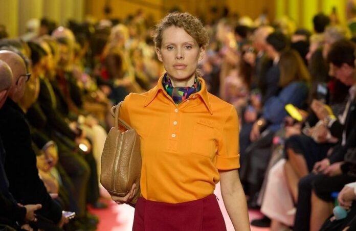 2025 a marqué le retour du style preppy, et 2026 s’annonce tout aussi prometteur avec un polo métamorphosé. Pour lui insuffler panache et modernité, les designers l’osent en version colorée, déstructurée, hybride. Chez Miu Miu, il devient un uniforme académique nouvelle génération : orange éclatant, cravate en soie multicolore et jupe crayon bordeaux. Vetements, sous la direction de Guram Gvasalia, le dote d’ épaulettes franches et l’associe à une jupe cargo. Issey Miyake en fait une sculpture textile : proportions revisitées, volumes froissés. Marie Adam-Leenaerdt joue le jeu du bicolore et superpose les pulls pour un layering saisissant. Lacoste, fidèle à ses racines mais résolument contemporain, le propose en vert rayé façon Mondrian, ou en version oversize, porté sur une jupe-serviette, comme une sortie de court stylisée. Longtemps figé dans une image académique, le polo se veut moins sérieux, plus joueur. Une légèreté bienvenue, à adopter sans réserve dès l’automne.