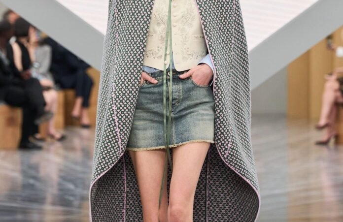 Impossible de l’ignorer : la mini-jupe en denim signe un retour remarqué cette saison.Pièce culte des années 2000, héritée de la mini imaginée par Mary Quant dans les années 60, elle revient dans une version raccourcie, assumée, presque provocante. Une réinterprétation Y2K pleinement inscrite dans les collections printemps-été 2026. Chez Dior, elle se décline en denim brut ou délavé, associée à des blazers structurés ou des capes sophistiquées. Isabel Marant en propose une version plus rock avec cuir, cuissardes et esprit Indie Sleaze parfaitement dosé.