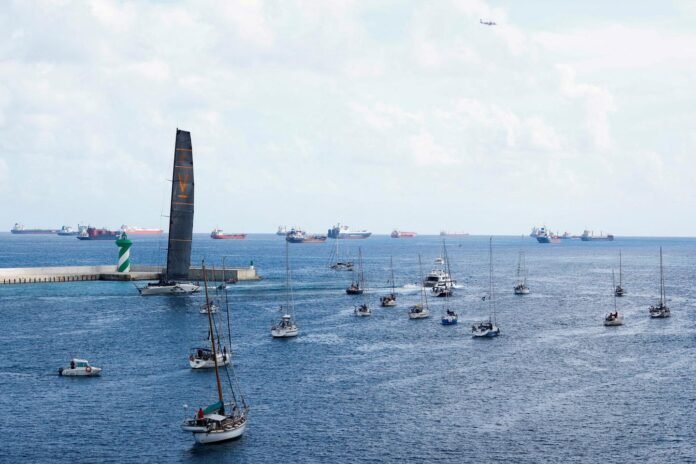 La « Global Sumud Flotilla », une expédition humanitaire à destination de la bande de Gaza menée par des militants dont Greta Thunberg, quitte le port de Barcelone (Espagne), le 31 août 2025.